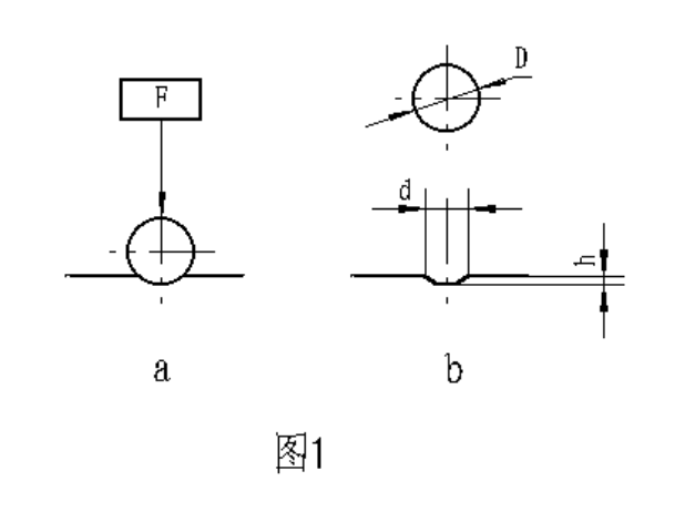 金屬布氏硬度試驗系采用一定直徑硬質合金球,以規定試驗力壓入被測材料表面(圖1a)按規定保持時間后,卸除試驗力,(圖1b)測量試樣表面的壓痕直徑,以計算出布氏硬度,并以下式計算之: